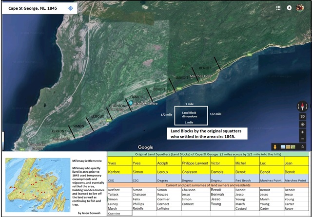 Today, the Municipality of Cape St. George includes: Garden Hill, Cape St. George, De Grau, Red Brook, Loretto, and Marche's Point.
