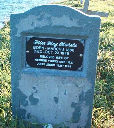 - Alice May March Young Jesso, born March 8, 1866, parents Louis Marche and Caroline Hynes. Alice married George Young. Her second Marriage was to John Jesso She died Oct 23, 1949. Permission was received from Emmanuel Benoit, one of her grandsons. Her headstone.