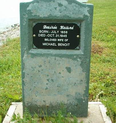 - Desiree Laisne Benoit, born July 1856, parents Louis Laisne and Nathalie (Sarah) Marche. She married Michel Benoit on September 3, 1871 and died October 31, 1945. Permission was received from her grandson Michael Benoit. Her gravestone.
